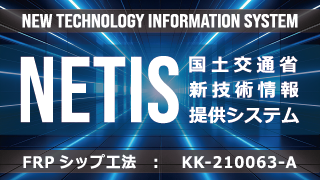news 「FRPシップ工法」 東京都建設局NeTIDaに登録 「FRPシップ工法」が東京都建設局NeTIDaに新技術として登録されました。 登録番号:2023003 技術名称:FRPシップ工法 登録日:2024年3月 ※「新技術情報データベース NeTIDa」ホームページ: 2024.05.08 news